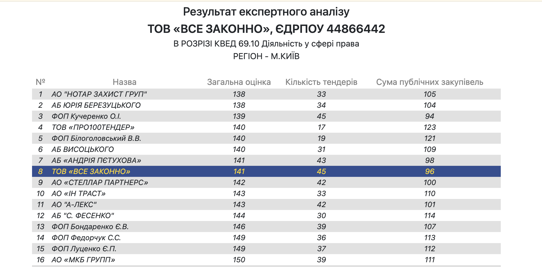 За результатами незалежного аналізу Всеукраїнського галузево-аналітичного центру, наша компанія посіла 8-ме місце в рейтингу надавачів послуг у сфері права за 2024 рік. Це є офіційним підтвердженням нашої надійності, прозорості та високої якості послуг, які ми надаємо кожному клієнту.